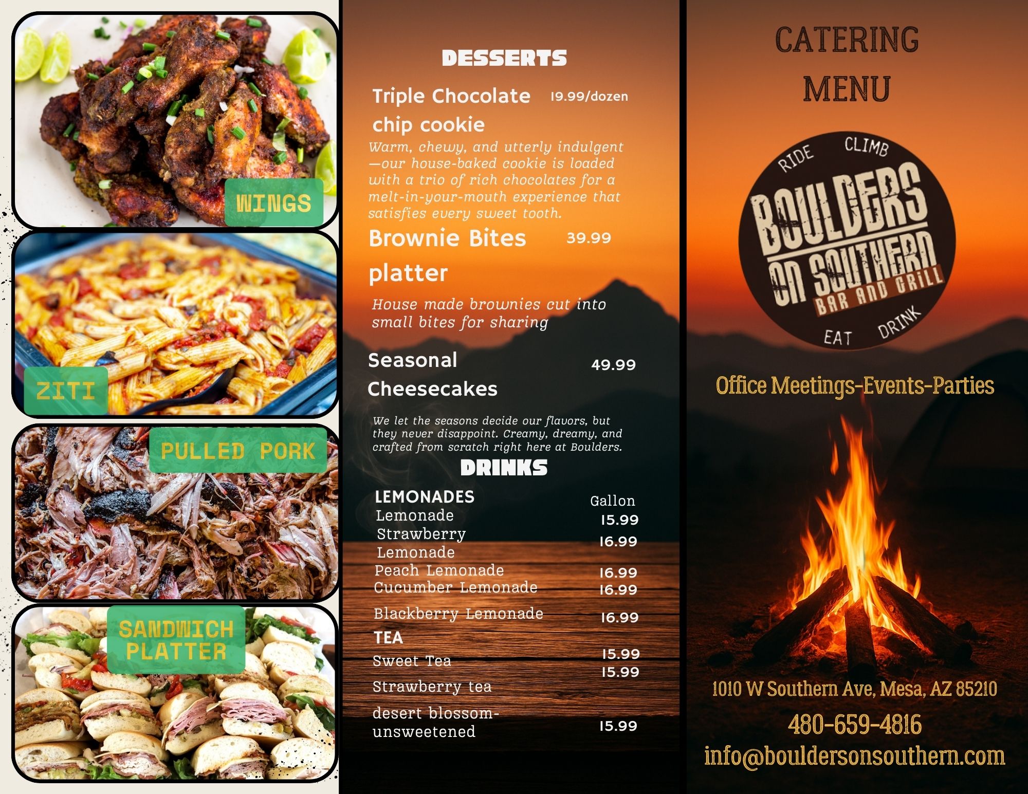 At Boulders on Southern, we provide exceptional catering services for all occasions. Our menus showcase fresh, flavorful dishes tailored to your preferences and event needs.